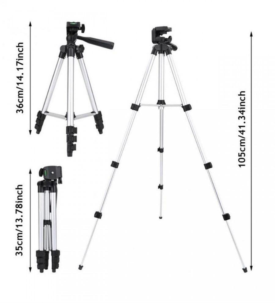 Profesyonel Telefon Fotoğraf Makinesi ve Kamera Tutucu Tripod Ayak 360 Derece Dönme Özelliği 3 Yönlü Yön Ayarı Katlanabilir ayaklar. Cep telefonu bağlantı aparatı cep telefonunuzla fotoğraf kamera çekimi yapabileceğiniz Cep telefonu Tripodu. Taşıma çantası ile birlikte her yerde yanınızda bulundurabileceğiniz Fotoğraf Makinası Tripodu. Ürün Özellikleri: Profesyonel fotoğraf ve video çekimi yapabilmenizi sağlar.Evrensel 1/4 inch başlığıyla tüm marka cihazlara uyum sağlar.Eni 5,5 cm - 8,5 cm arası genişlikteki tüm cep telefonlarına uyumlu olarak tasarlanmıştır.Tutucu başlık kendi ekseni çevresinde 360 derece dönebilir.90 derece yatay dönebilen başlığıyla dikey çekim yapılabilir.Dahili su terazisiyle eğim kontrolü yapılabilir.Lastik ayak tabanları tripodun kaymasını engeller.2 kilogram taşıma kapasitesi bulunur.Asansör kolu ve kilidi Çıkarılabilir kamera platformu Yan ayak kilidi Katlanabilir ayaklar Alüminyum toplanabilir ayak sistemi Hareket kollu asansör Kolay açma sistemi Kaymayı önleyen lastik ayak sistemi Teleskobik Özelliği Teleskobik Ayak Kilidi Taşıma Çantası 360 Derece Dönme Özelliği Asansör Ürün Ölçüleri: Açık :105 cm Kapalı 34 cm Paket İçeriği: 1 Adet Tripod Ayak. 1 Adet Telefon Tutucu.
