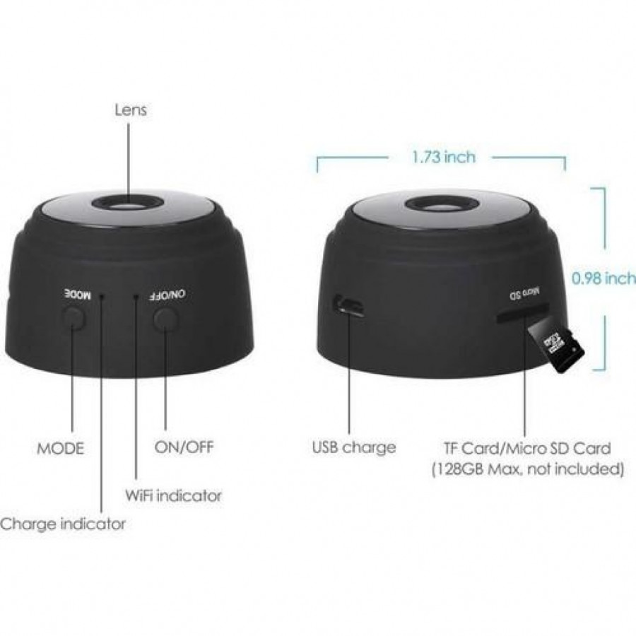Kablosuz WiFi IP mini Kamera Ultra-mini ve görünmez, masanın altına, duvarına, tavanına, her yerde güçlü mıknatısla gizlenmesi kolay.