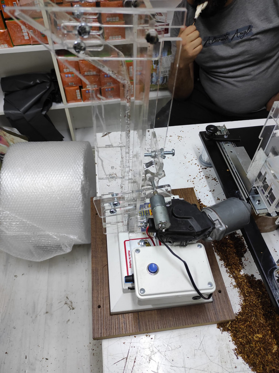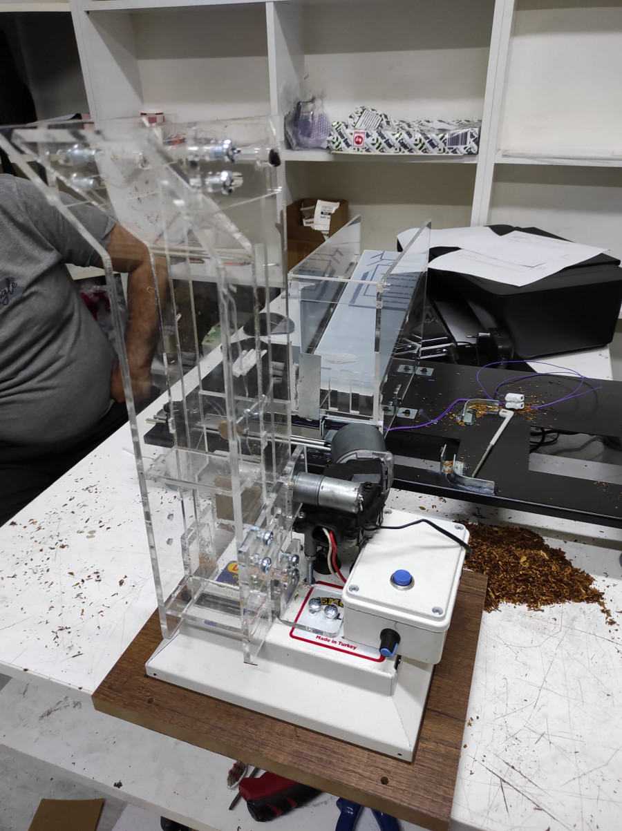 Yarı otomotik slim sigara sarma makinesi, dolum işlemini elektrik yardımı ile gerçekleştiren, kollu sigara sarma makinelerine kıyasen, daha hızlı dolum yapan makinedir. En iyi yarı otomatik sigara sarma makinesi, Top o matic kollu sigara sarma makinesi ile yapılır. Top o matic makine Türkiye piyasasının tütün çeşitliliğine tam uyum sağlar. Diğer çoğu makine, nemli, toz, fazla saçaklı, vesaire. Gibi tütünleri zor doldurur yada dolduramazken, Top o matic makine her tütünü gerektiği gibi doldurur. Yarı otomatik slim sigara sarma makinesi Topmatik makinenin kollu versiyonuna, bazı mataryeller monte edilerek yapılır. Top o matic sigara sarma makinesinin üretiminde kullanılan, tütün kesme bıçağı, tütünü dolduran kaşığı, kaygan tütün haznesi ve özel yapılmış olan flitre takma ağızlığı, makaronların tam dolmasını sağlar. Bu mekanizmalar aynı andada, uzun süreli kullanıma dayanıklılık gösterebilir şekilde tasarlanmıştır. Yapım bakımından kızaklı sistem ile çalışması, tütünlerin ezilmeden, ufalanmadan flitrelere dolmasını sağlar. Bu sayede sigarada erken sönme, kül dökülme gibi can sıkıcı sorunların önüne geçilmiştir. Yarı otomatik slim sigara sarma makinesi, şeffaf tütün haznesine sahiptir. Bu şeffaflık sayesinde, haznedeki tütün miktarını kontrol edebilir ve gerektiğinde tütün eklemesi yapabilirsiniz. Ayrıca bu hazne üzerine tasarlanan ve kullanılması basit olan, tütün sıkılık gevşeklik ayar mekanizması sayesinde, dilediğiniz ayarda makaronlarınızı doldurabilirsiniz. Kullanıcı yönünden bir çok şey düşünülerek meydana getirilen, yarı otomatik slim sigara sarma makinesi, el ve ayak butonları ile kullanılabilme özelliğine sahiptir. Bu sayede bir elinizle makaronu takarak diğer elinizin boşta kalması sağlanır. Mekanizmalara hereket veren motoru hem güçlü hemde sessiz çalışma özelliği taşır. Evde kullanılabilir. Olası tütün sıkışması durumunda, motor gücünün aksamlara zarar vermemesi için, sürücü kartına bağlı koruyucu görevi sigorta mevcuttur. Bu sayede mekanizmalar daha uzun süre kullanılabilir. Hassas mühendislik çalışması ile üretilen, yarı otomatik slim sigara sarma makinesi, kaşık, bıçak gibi belirli zamanlarda değişmesi gereken parçaları, kolayca çıkarılıp, takılabilir yapıya sahiptir.